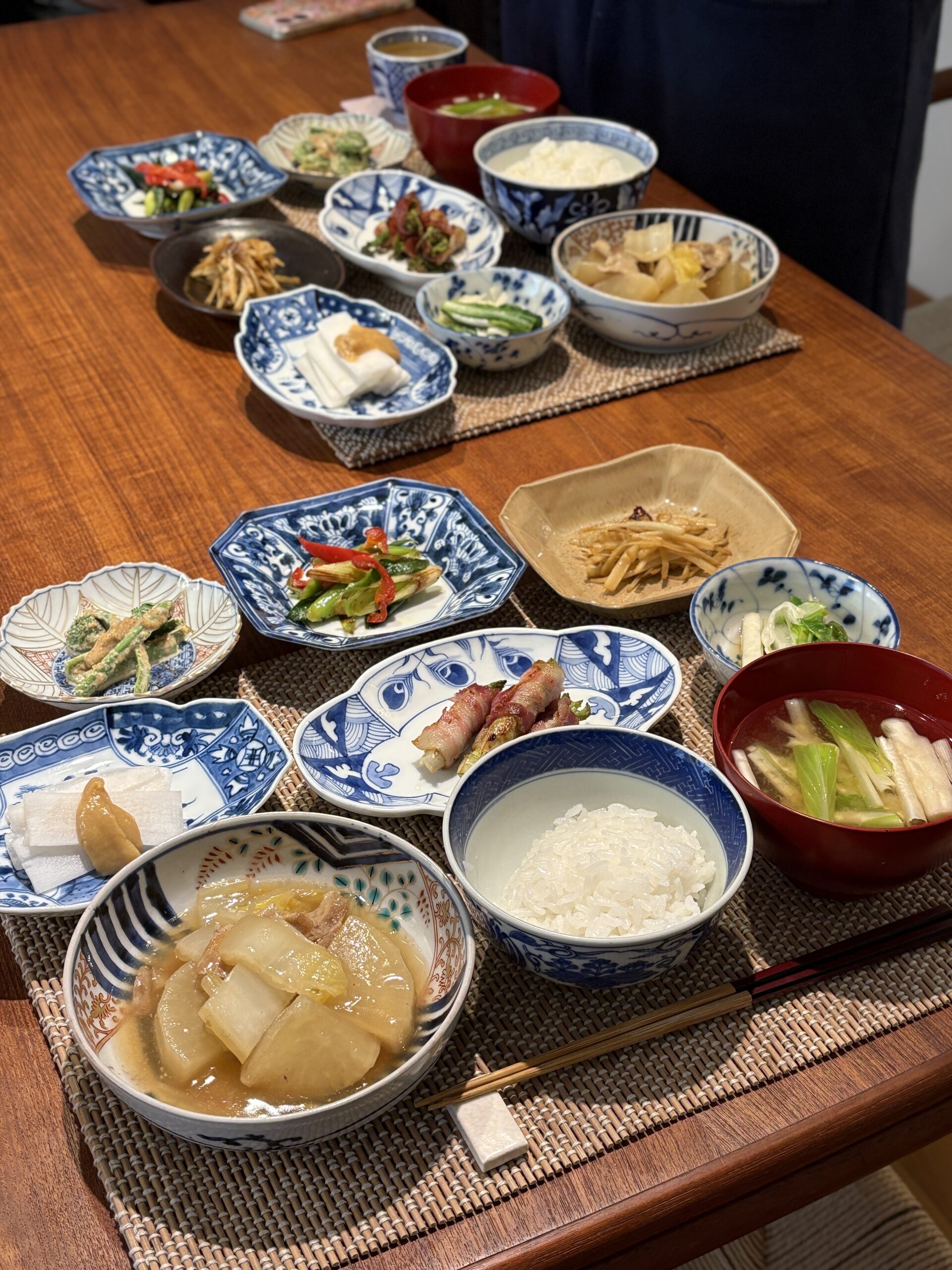 副菜には酢の物やひじきの煮物を合わせ、春野菜のお味噌汁を添えて、春の一汁三菜膳に組み立てます。